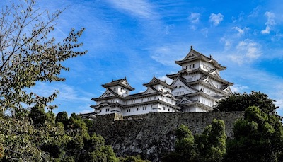El espectacular castillo samurái de Himeji que recibe el apodo de "la Garza Blanca" por el color blanco del yeso exterior, fue construido en el año 1346. El yeso exterior además de ser decorativo, también es ignífugo, algo muy importante si tenemos en cuenta que el castillo fue construido con madera. La construcción que vemos en la actualidad es el edificio original, ya que sus muros nunca fueron destruidos por incendios, terremotos o guerras.